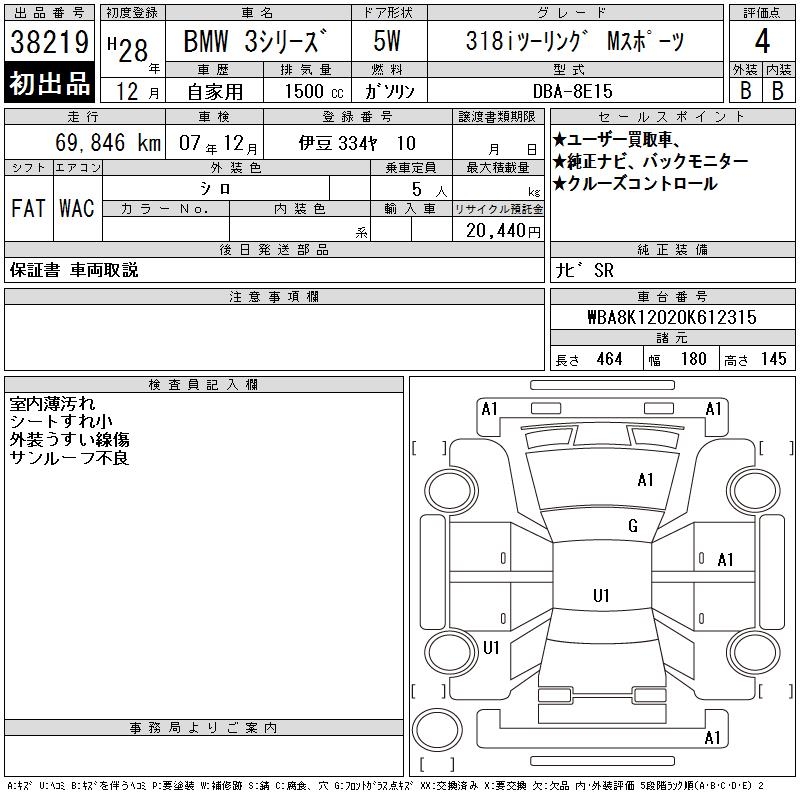 BMW 3 SERIES 318I TOURING M SPORT - лот 38219