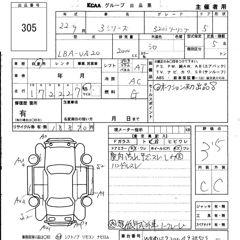 BMW 3 SERIES 320I TOURING - лот 305