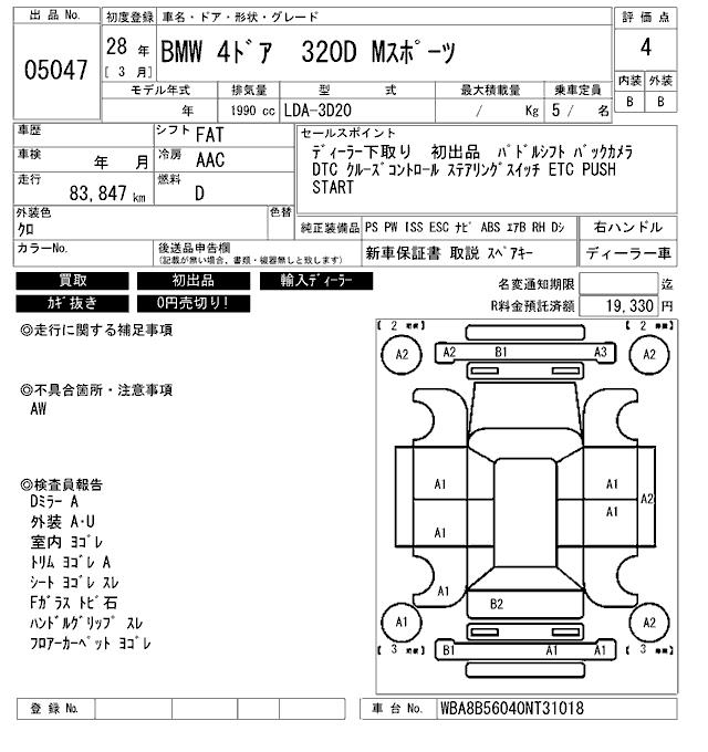 BMW 3 SERIES 320D M SPORT - лот 5047