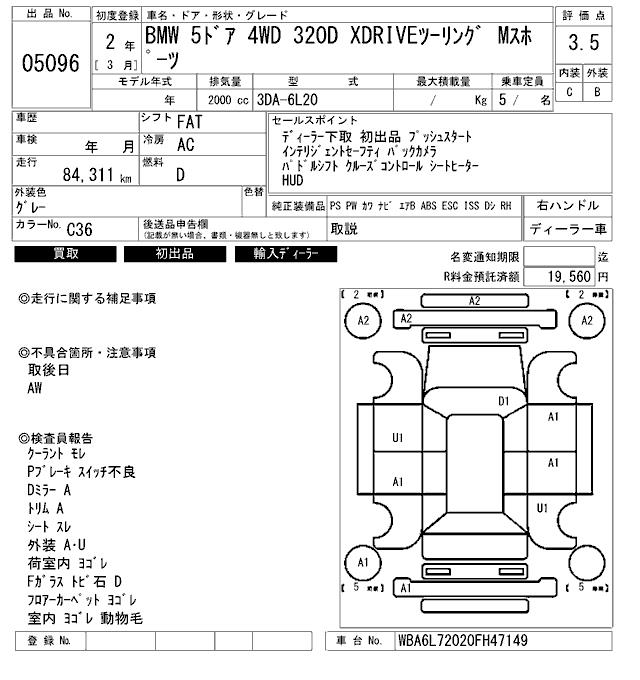 BMW 3 SERIES 320D XDRIVE TOURING M SPORT - лот 5096