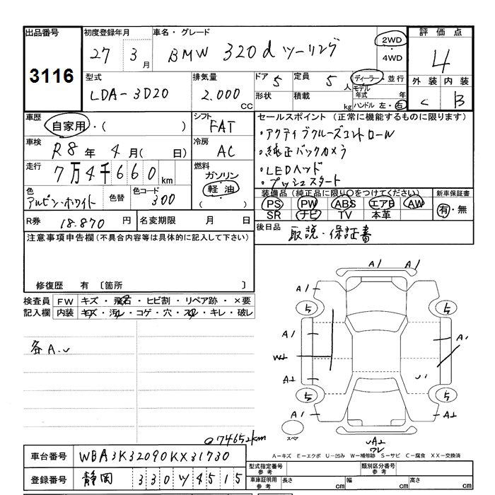BMW 3 SERIES 320D TOURING - лот 3116