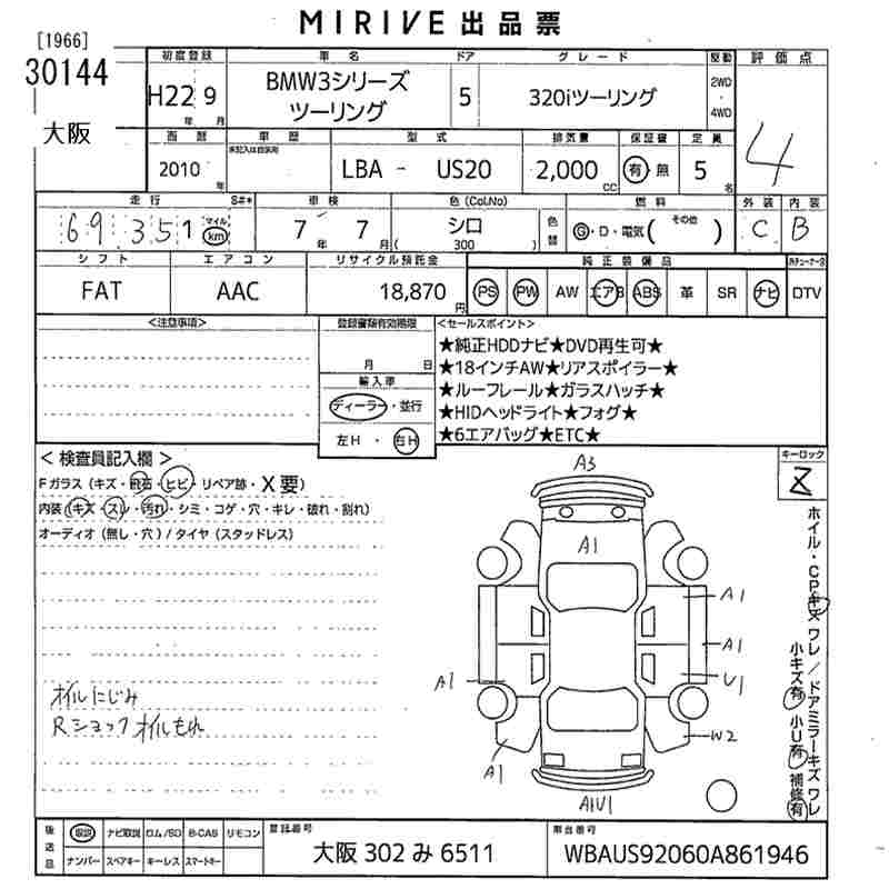 BMW 3 SERIES 320I TOURING - лот 30144