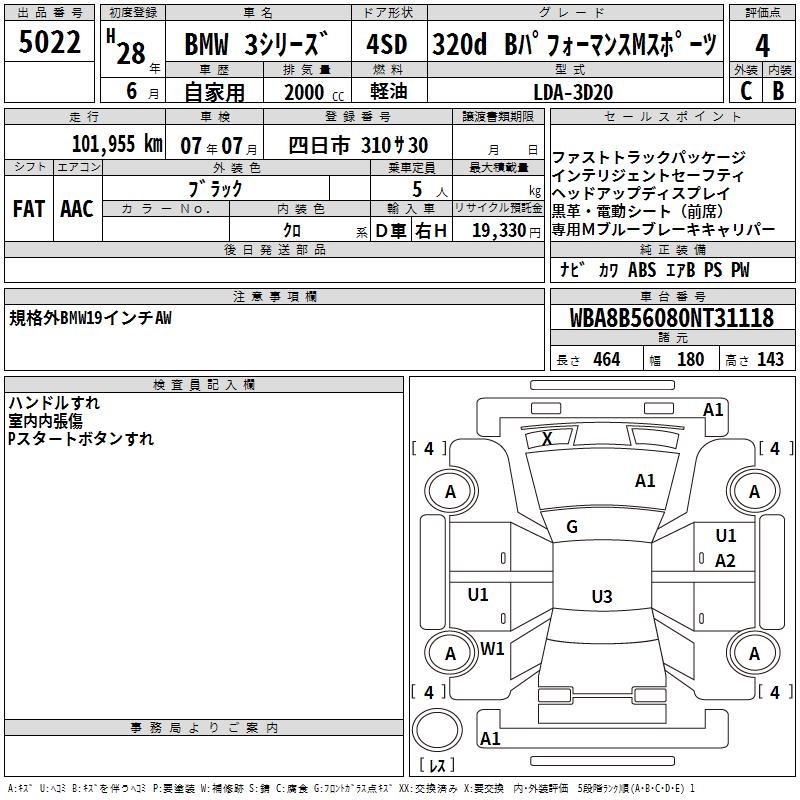 BMW 3 SERIES 320D B PERFORMANCE M SPORT - лот 5022