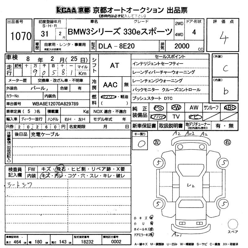 BMW 3 SERIES 330E SPORT - лот 1070