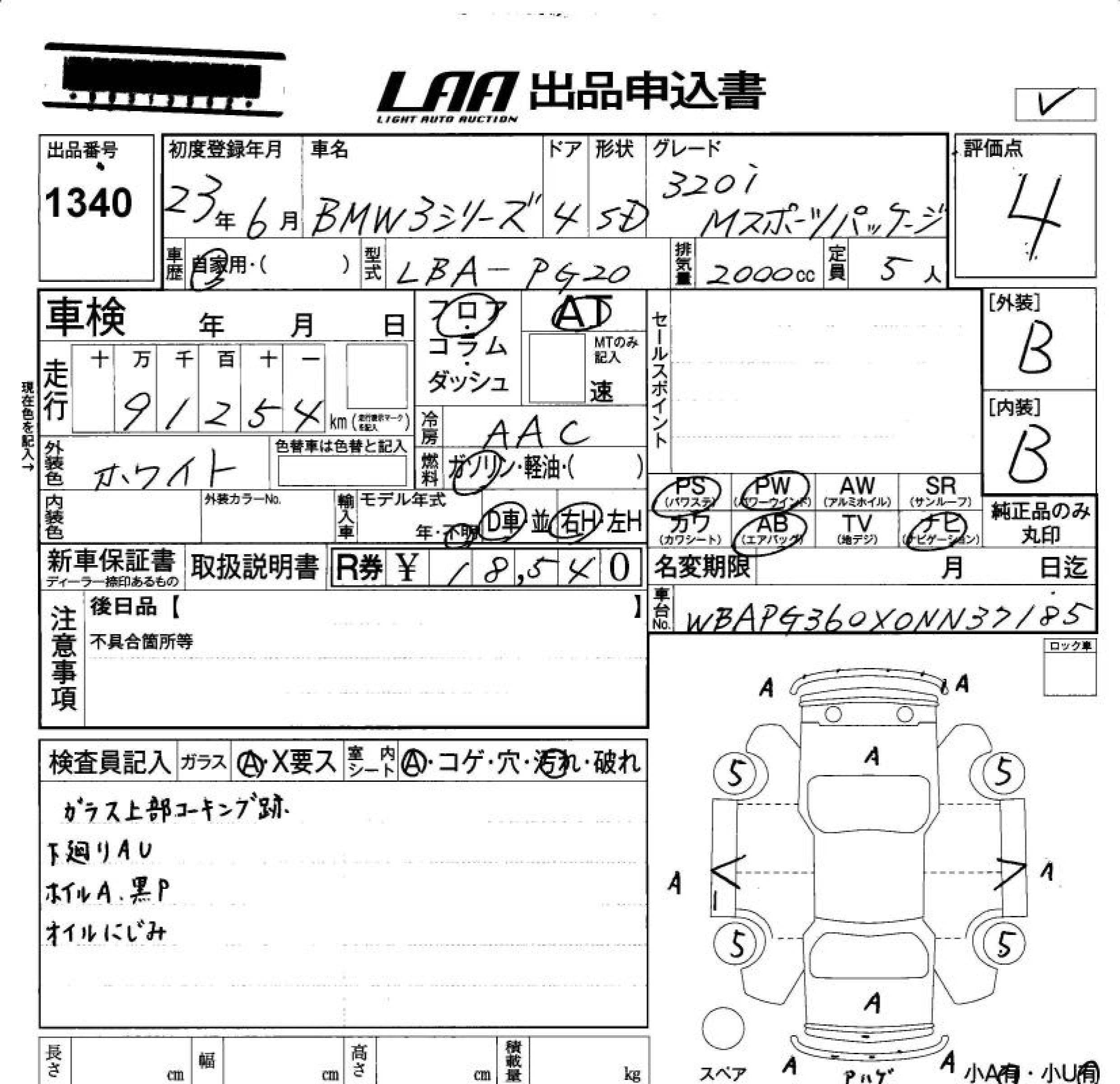 BMW 3 SERIES 320I M SPORT PACKAGE - лот 1340