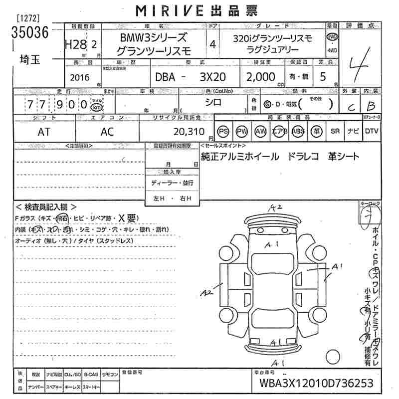 BMW 3 SERIES 320I GRAN TURISMO LUXURY - лот 35036