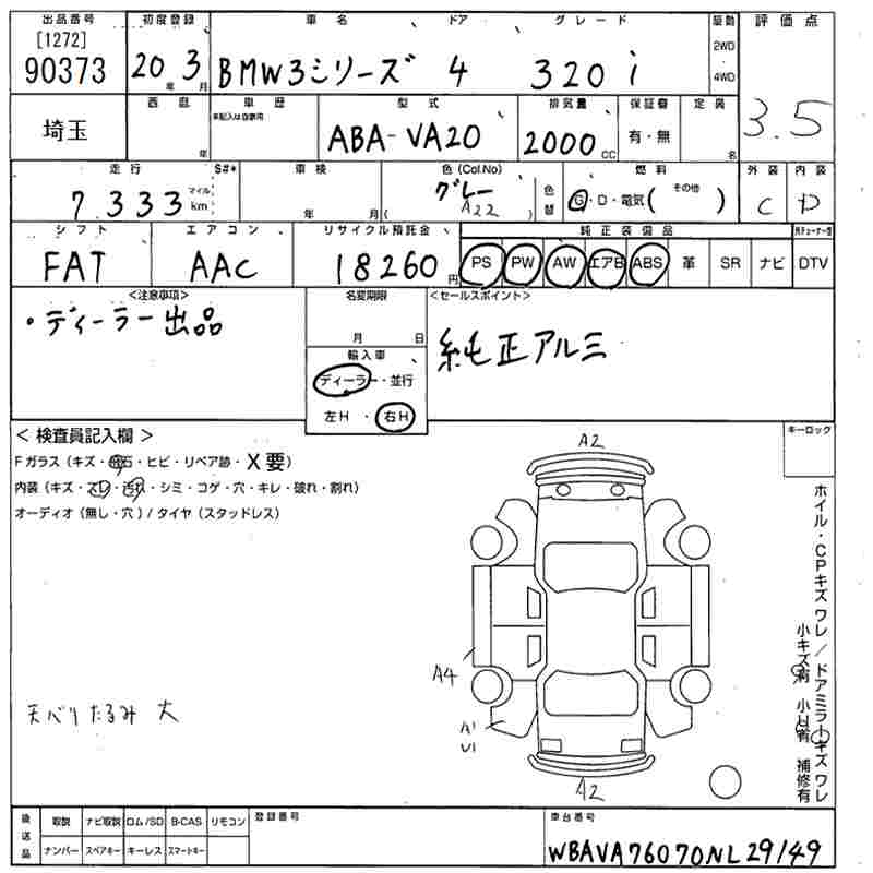 BMW 3 SERIES 320i - лот 90373