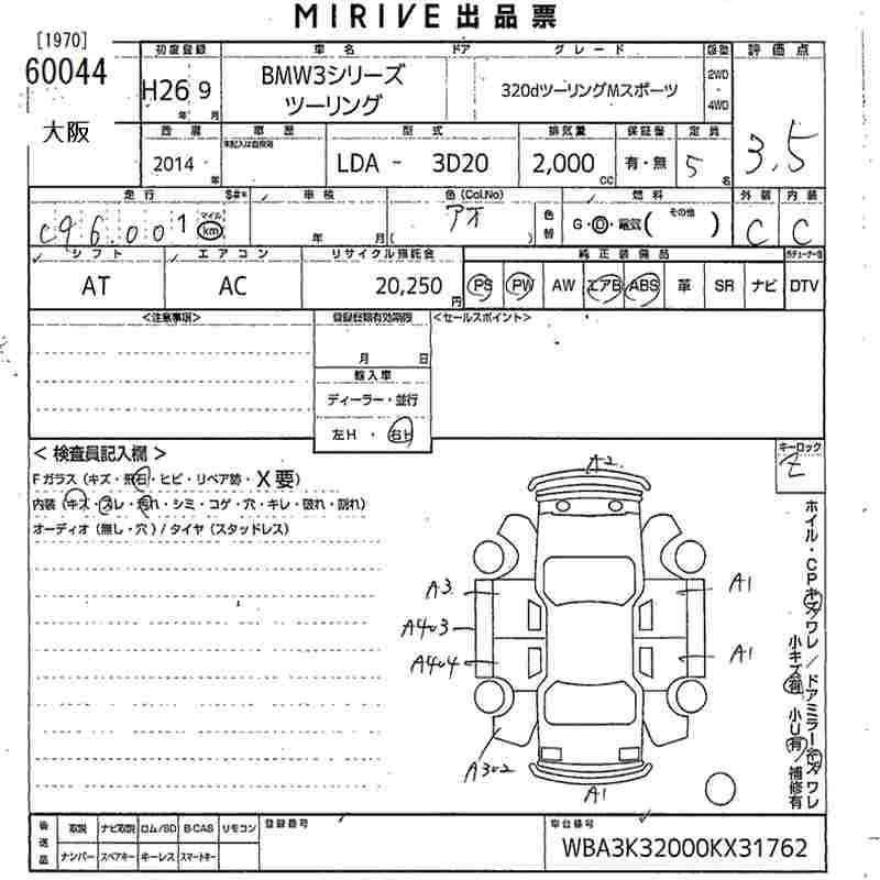 BMW 3 SERIES 320D TOURING M SPORT - лот 60044
