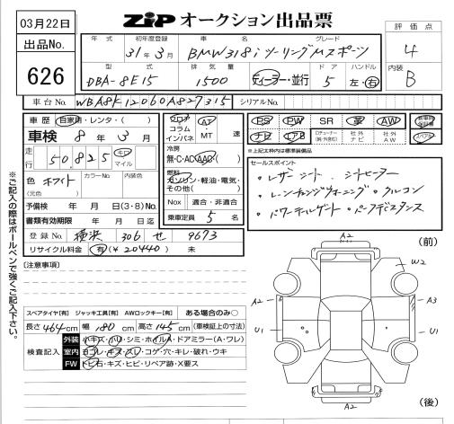 BMW 3 SERIES 318 I TOURING MSP - лот 626