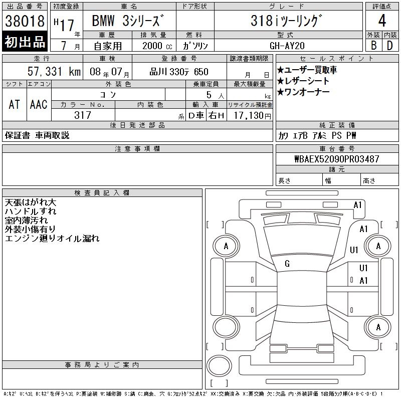 BMW 3 SERIES 318I TOURING - лот 38018