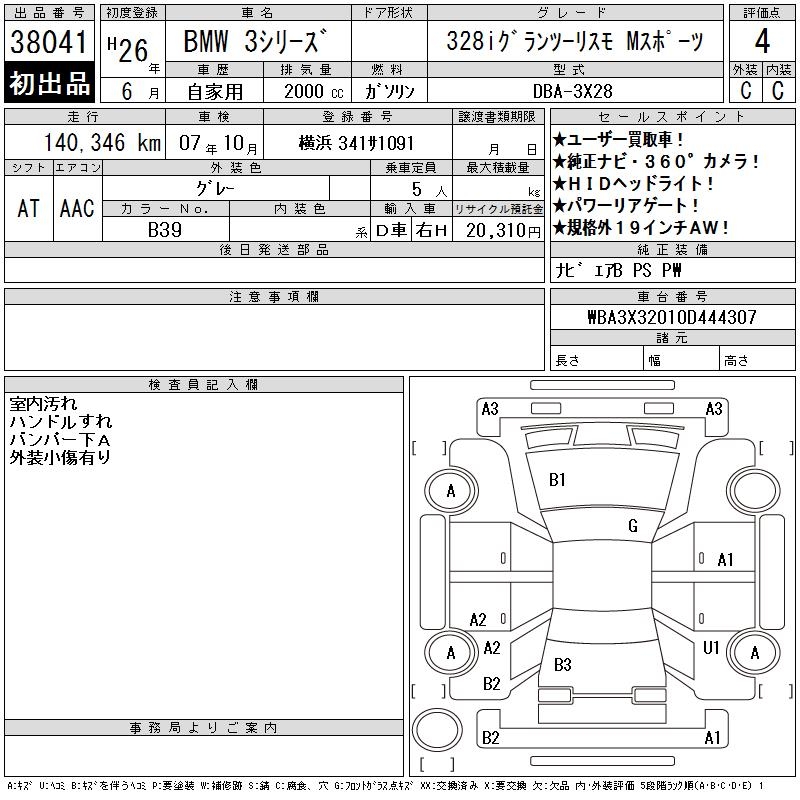 BMW 3 SERIES 328I GRAN TURISMO M SPORT - лот 38041