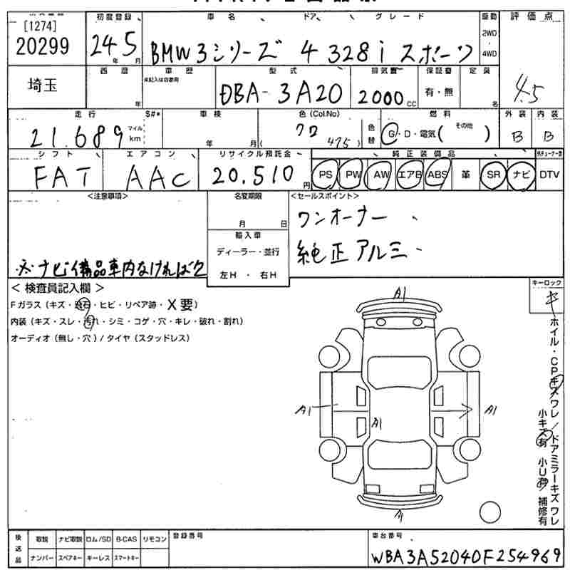 BMW 3 SERIES 328I SPORT - лот 20299