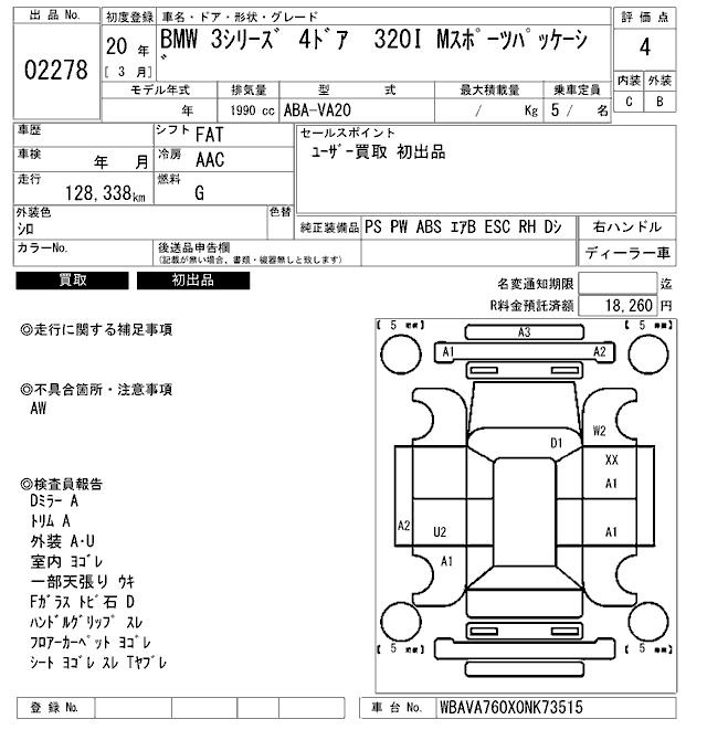 BMW 3 SERIES 320I M SPORT PACKAGE - лот 2278