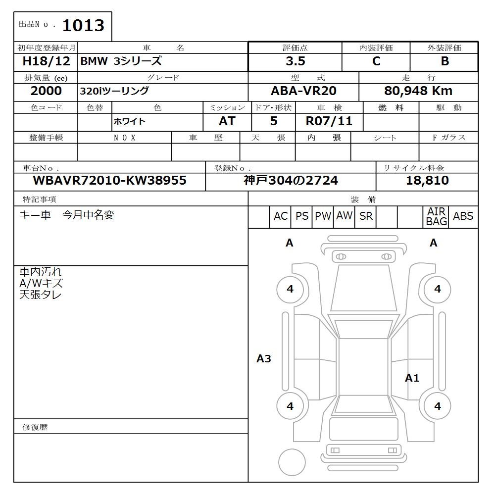 BMW 3 SERIES 320I TOURING - лот 1013