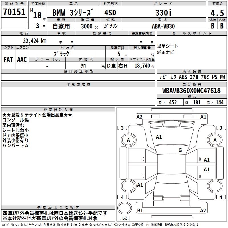 BMW 3 SERIES 330i - лот 70151