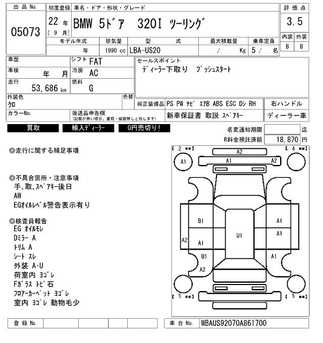 BMW 3 SERIES 320I TOURING - лот 5073