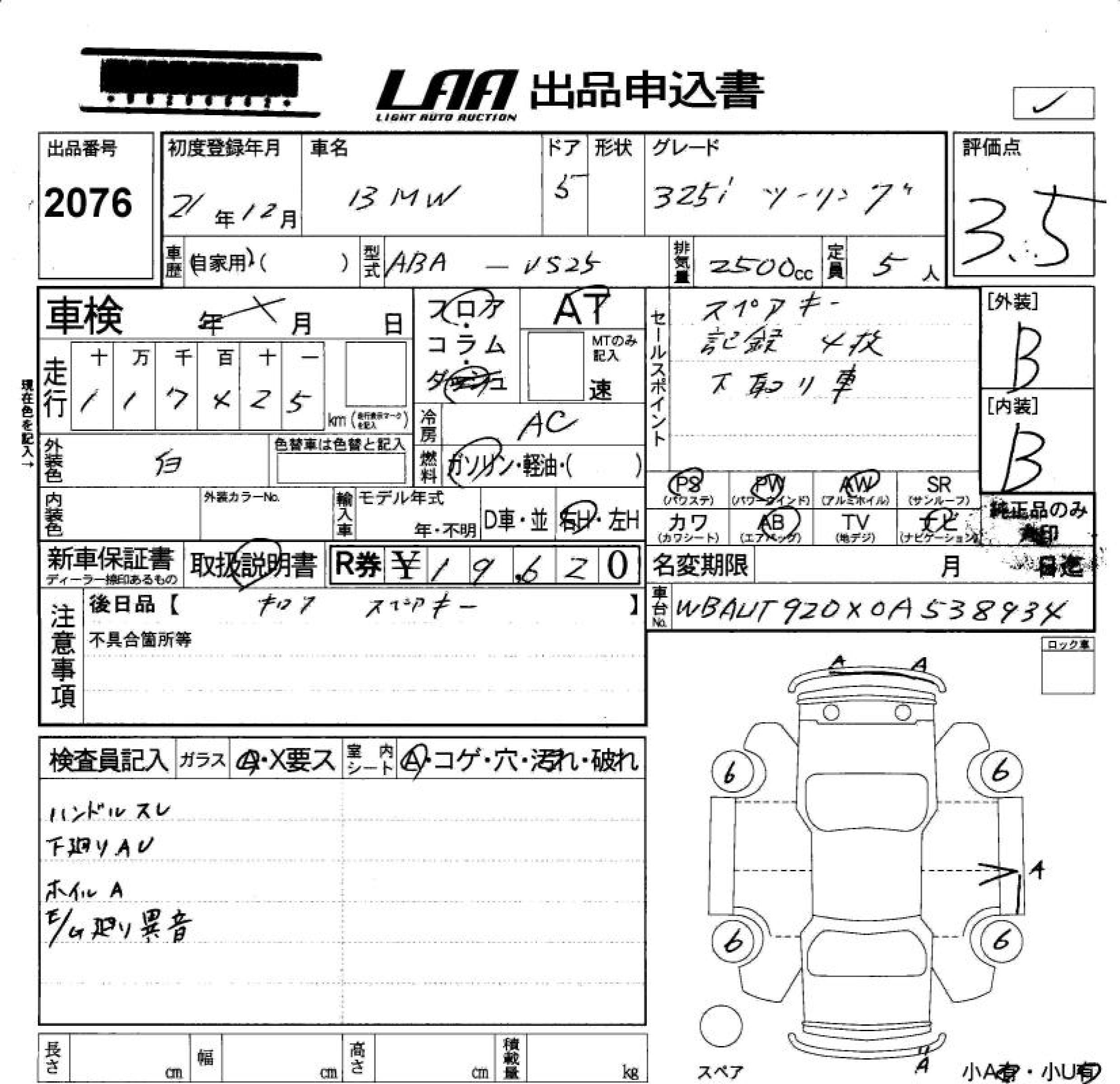 BMW 3 SERIES 325I TOURING - лот 2076