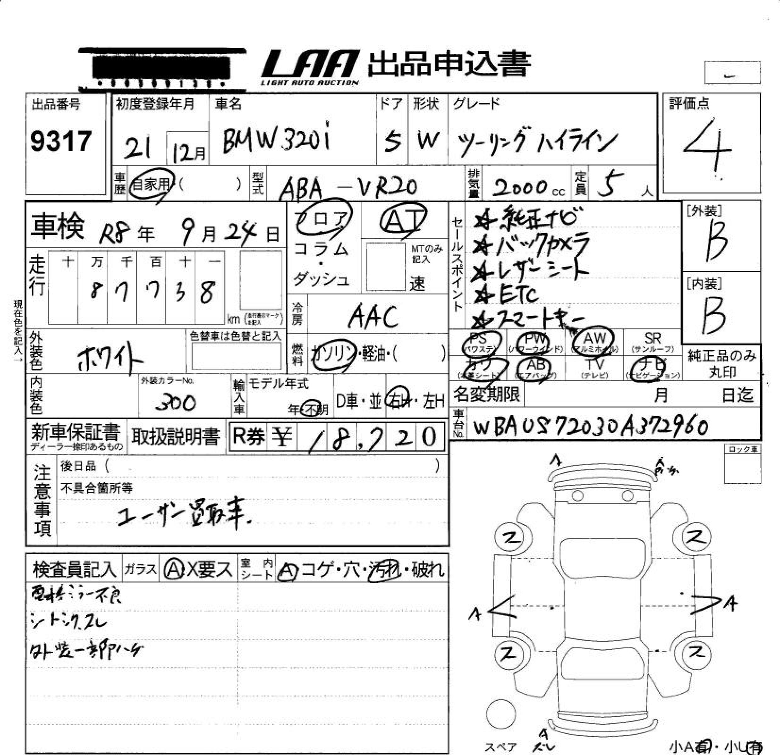 BMW 3 SERIES 320I TOURING HIGH LINE - лот 9317