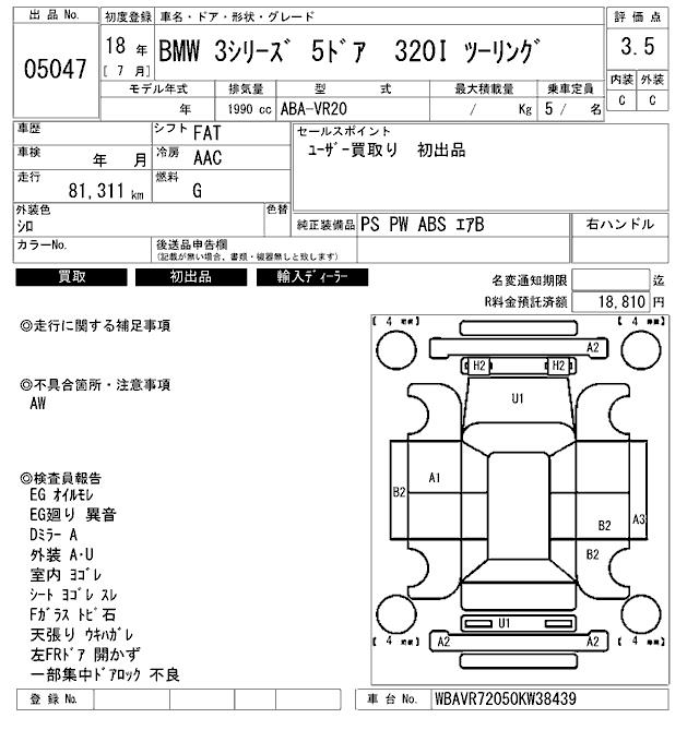 BMW 3 SERIES 320I TOURING - лот 5047