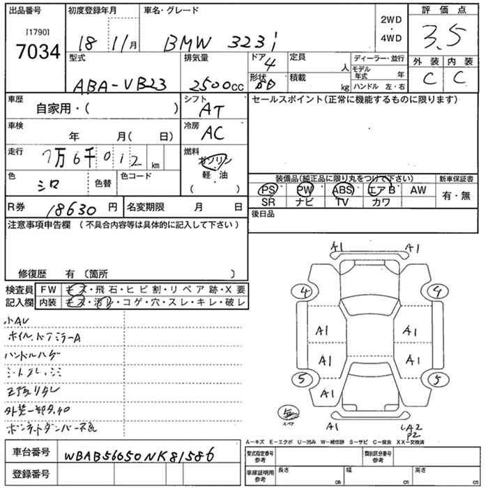BMW 3 SERIES 323i - лот 7034