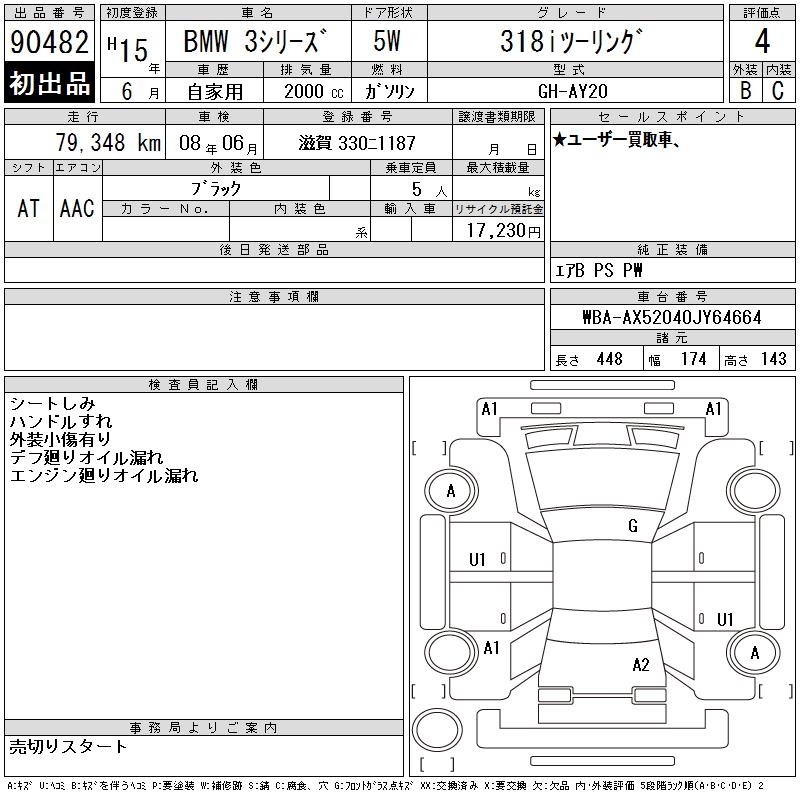 BMW 3 SERIES 318I TOURING - лот 90482