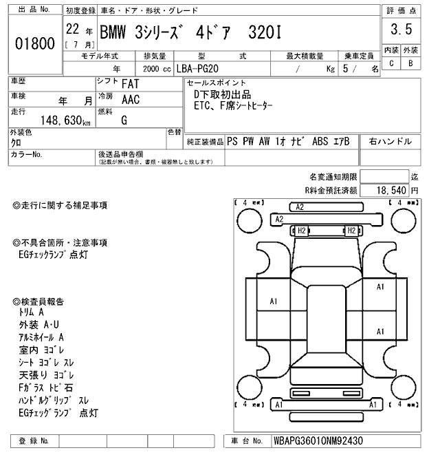 BMW 3 SERIES 320I - лот 1800