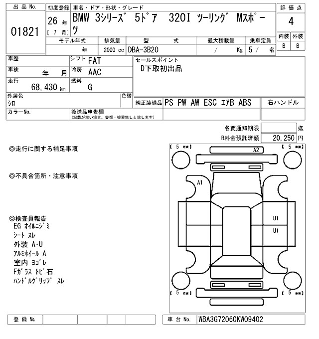 BMW 3 SERIES 320I TOURING M SPORT - лот 1821
