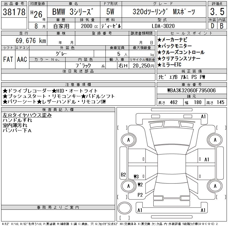 BMW 3 SERIES 320D TOURING M SPORT - лот 38178