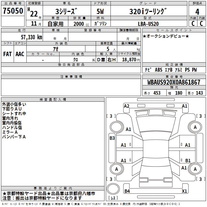 BMW 3 SERIES 320I TOURING - лот 75050