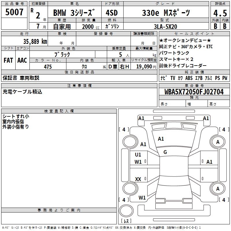 BMW 3 SERIES 330E M SPORT - лот 5007