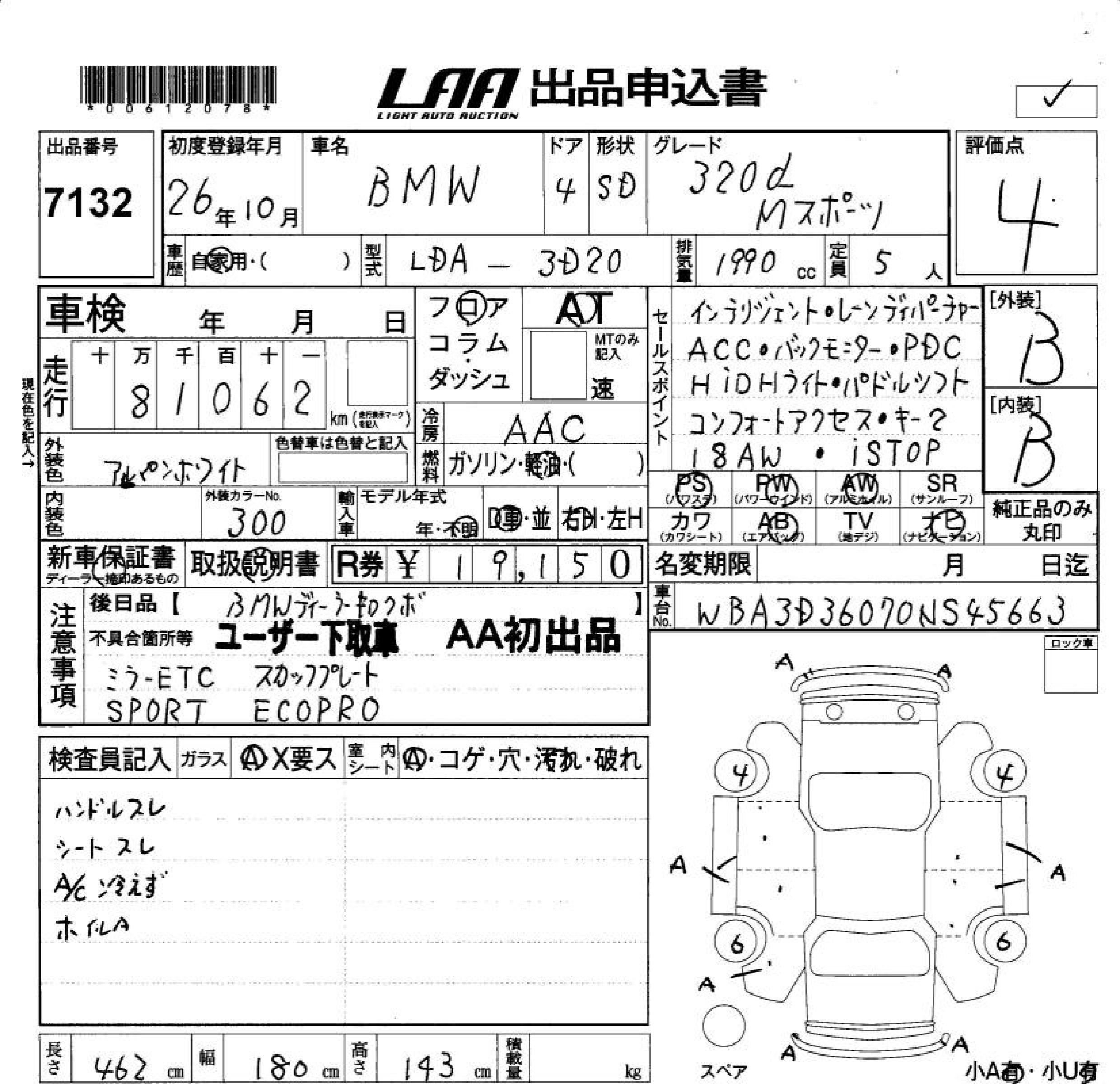 BMW 3 SERIES 320D M SPORT - лот 7132