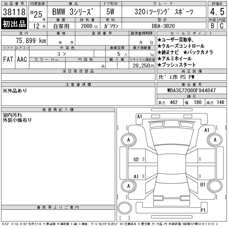 BMW 3 SERIES 320I TOURING SPORT - лот 38118