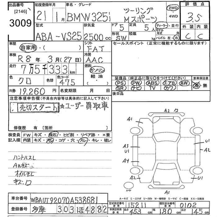 BMW 3 SERIES 325I TOURING M SPORT - лот 3009