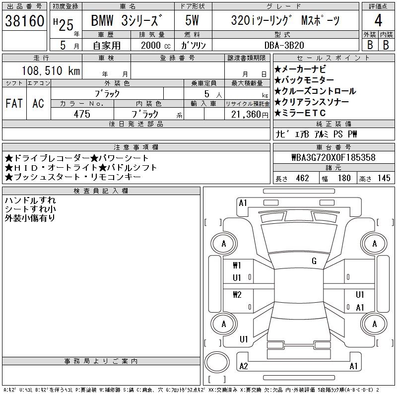 BMW 3 SERIES 320I TOURING M SPORT - лот 38160