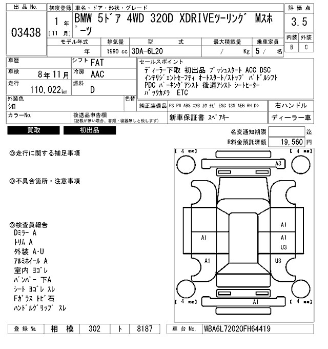 BMW 3 SERIES 320D XDRIVE TOURING M SPORT - лот 3438