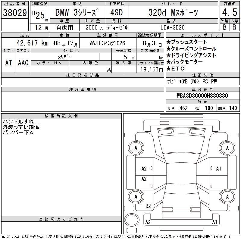 BMW 3 SERIES 320D M SPORT - лот 38029