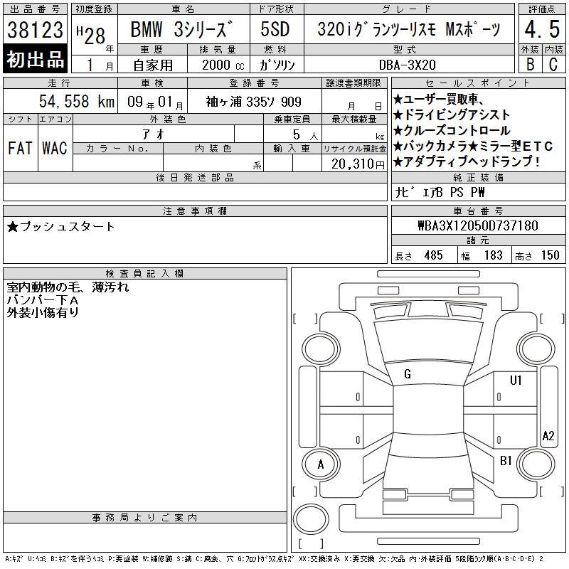 BMW 3 SERIES 320I GRAN TURISMO M SPORT - лот 38123
