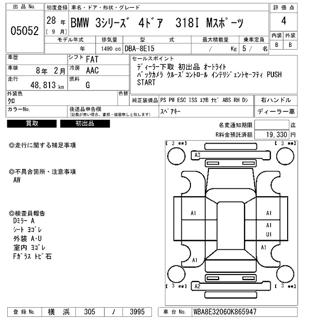 BMW 3 SERIES 318I M SPORT - лот 5052