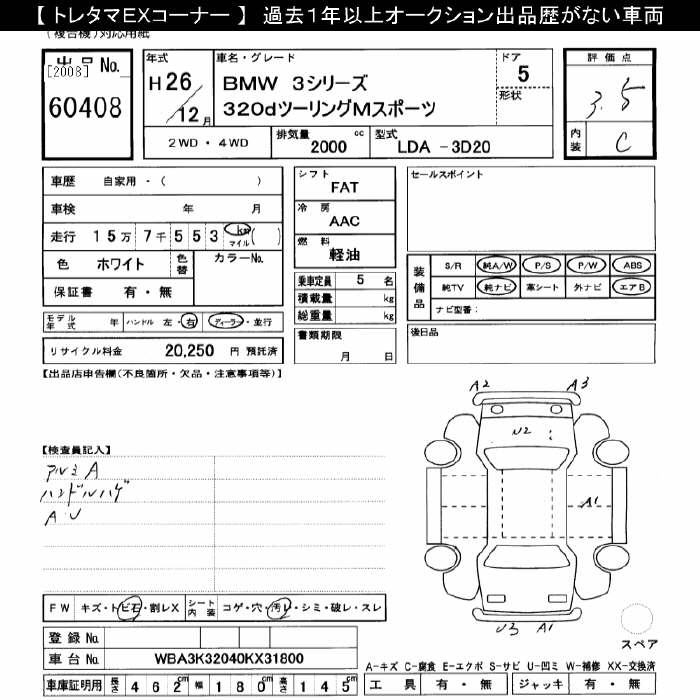 BMW 3 SERIES 320D TOURING M SPORT - лот 60408