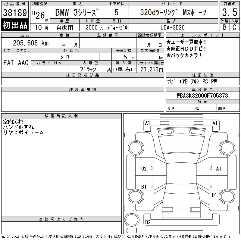BMW 3 SERIES 320D TOURING M SPORT - лот 38189
