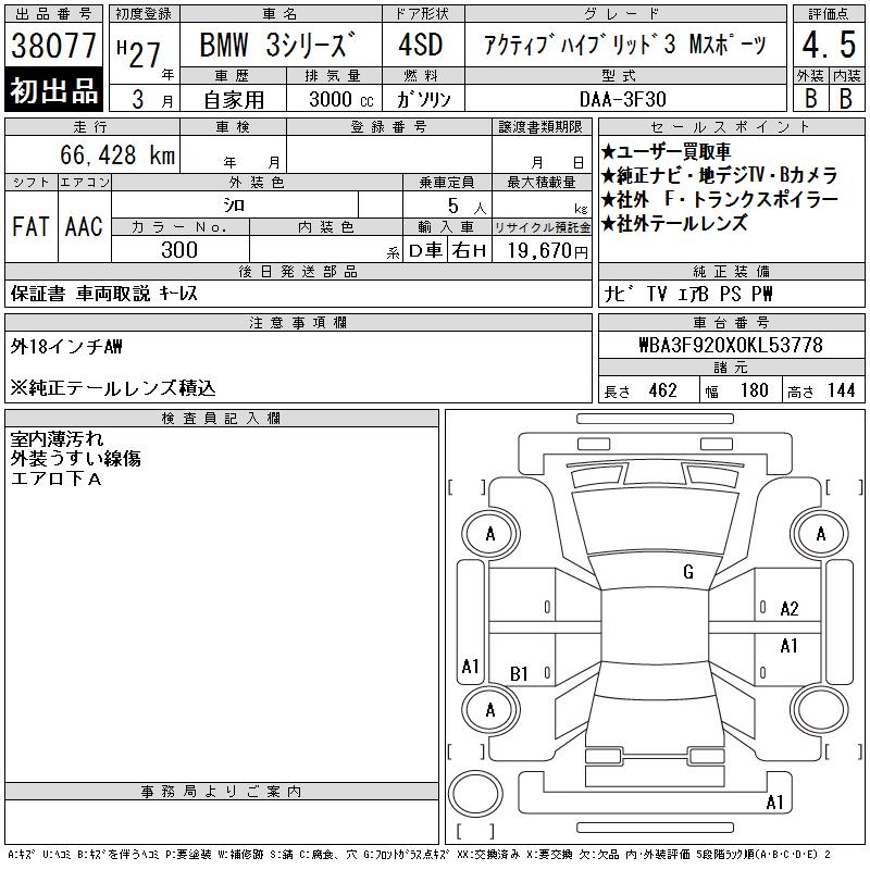 BMW 3 SERIES ACTIVE HYBRID 3 M SPOILER - лот 38077