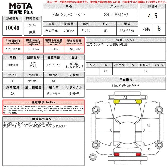 BMW 3 SERIES 330I M SPORT - лот 10046