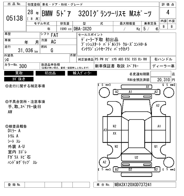 BMW 3 SERIES 320I GRAN TURISMO M SPORT - лот 5138