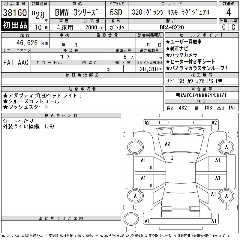 BMW 3 SERIES 320I GRAN TURISMO LUXUR - лот 38160