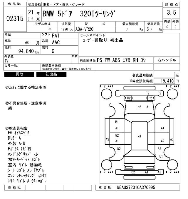 BMW 3 SERIES 320I TOURING - лот 2315