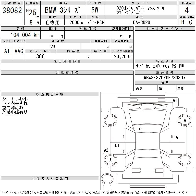 BMW 3 SERIES 320D BPAF TOURING RUG - лот 38082