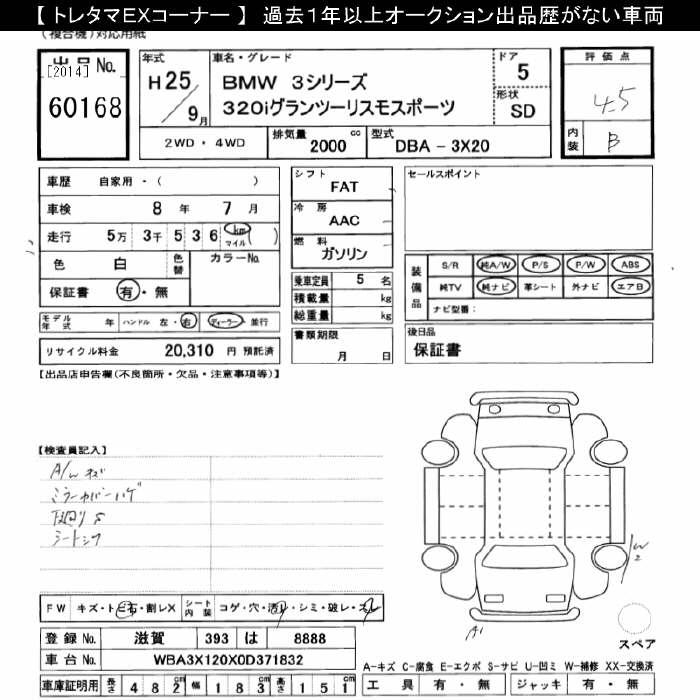 BMW 3 SERIES 320I GRAN TURISMO SPORT - лот 60168