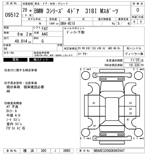 BMW 3 SERIES 318I M SPORT - лот 9512