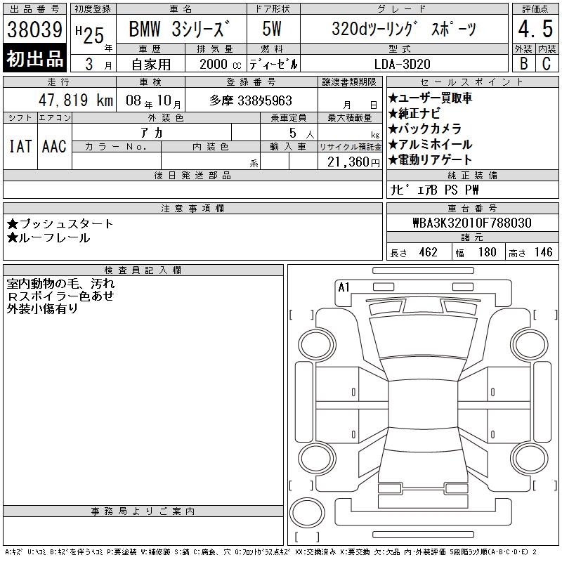BMW 3 SERIES 320D BPAFO TOURING SPORT - лот 38039