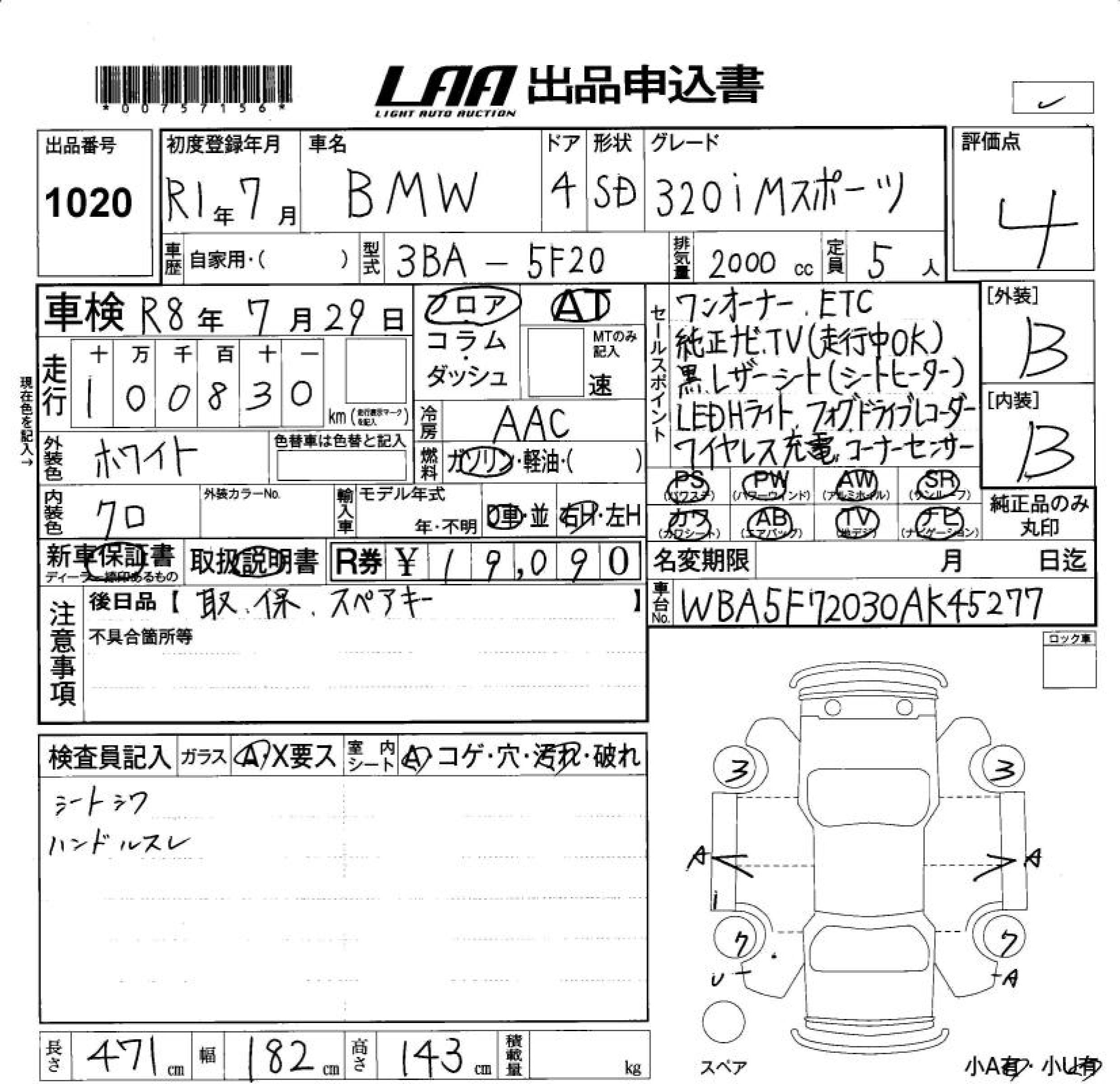 BMW 3 SERIES 320I M SPORT - лот 1020